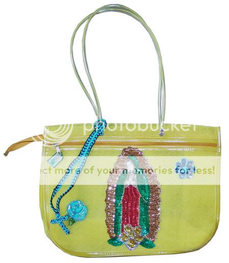 - Tiene una aplicación de lentejuelas en el centro con la imagen de la Virgen de Guadalupe.